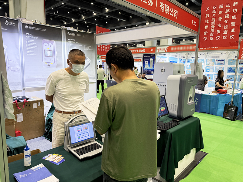 同時展出的骨密度儀系列,雙能X射線骨密度儀采用雙能X射線技術,能夠評估骨質疏松風險,為臨床診斷提供依據,該系列設備適用于各級醫院、康復醫院、體檢中心等各類醫療機構,其特性為骨骼健康管理提供了解決方案。超聲骨密度儀采用無輻射的超聲檢測技術,適用于兒童、孕婦等對輻射敏感的人群,在骨骼健康篩查場景中具有廣泛適用性。其通過聲波傳播速度與寬帶超聲衰減等參數分析骨骼狀況,為不同年齡段人群的骨骼健康管理提供多樣化選擇。在現場的產品演示中,專業技術人員為參觀者詳細講解了設備的工作原理和特點,吸引了眾多行業人士及合作伙伴駐足交流。
