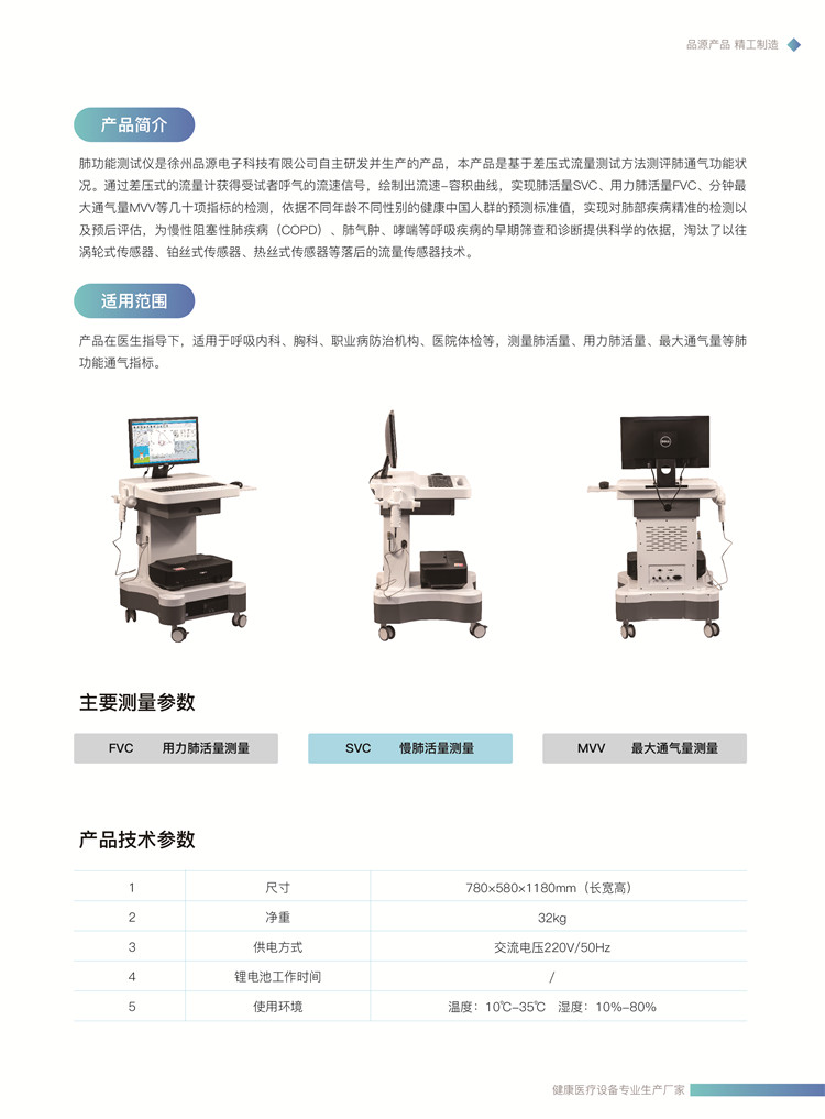 適用范圍:產品在醫生指導下,適用于呼吸內科、胸科、職業病防治機構、醫院體檢等,測量肺活量、用力肺活量、最大通氣量等肺功能通氣指標。