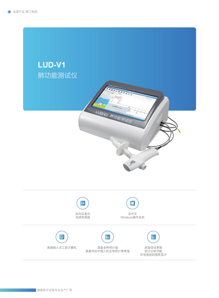 肺功能儀適用范圍:產品在醫生指導下,適用于呼吸內科、胸科、職業病防治機構、醫院體檢等,測量肺活量、用力肺活量、最大通氣量等肺功能通氣指標。